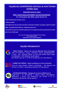 Per continuar amb la línia de la formació i l’assessorament, el Punt Òmnia ja ha programat per aquest hivern 2026 tres tallers gratuïts diferents sobre competències digitals: eines Google, correu electrònic i navegació segura.
