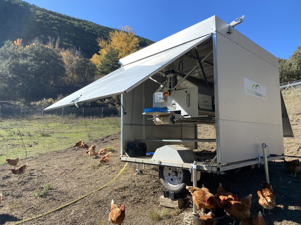 Padrós explica que “volia un galliner que no fos fix, amb un doble objectiu: d’una banda, per aconseguir que no s’erosionés tant el terreny i, de l’altra, perquè les gallines poguessin anar pasturant diferents zones i tinguessin sempre herba fresca”. Amb aquestes premisses va estar buscant diferents sistemes i van trobar el model que han acabat implementant: “és un model australià, basat en caravanes mòbils que pots arrossegar amb el cotxe per anar-lo desplaçant, de manera que les gallines van femant diferents llocs del prat”, detalla.