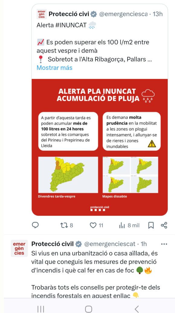 Podeu fer seguiment de les incidències i evolució de l’episodi al compte de twitter, facebook i instagram @emergenciescat