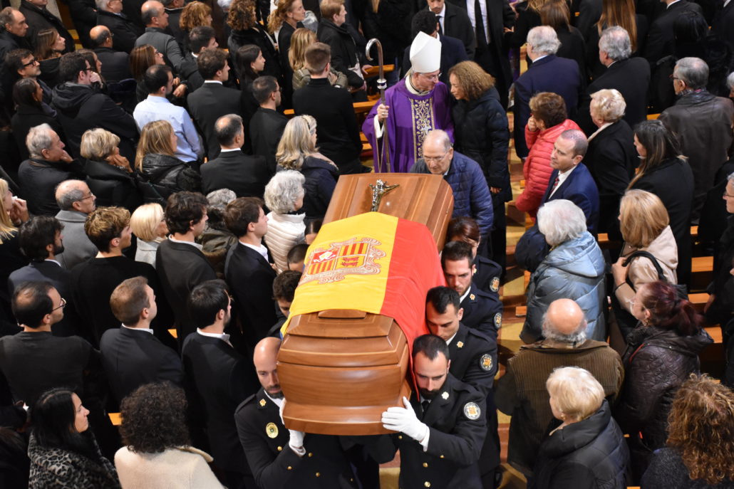 REDACCIÓ (Escaldes-Engordany).- L’església de Sant Pere Màrtir d’Escaldes-Engordany s’ha omplert de gom a gom aquest dimecres a la tarda per acomiadar l’ex-cap de Govern d’Andorra, Antoni Martí, mort aquest dilluns als 60 anys, a causa d’un infart. La cerimònia s’ha celebrat a l’església de la parròquia que el va veure néixer, cerimònia catalogada com a funeral d’Estat, el primer registrat al Principat i on ha entrat embolcallat amb la bandera andorrana i a espatlles d’una delegació policial, segons informa l’Agència de Notícies Andorrana (ANA).