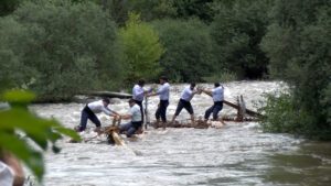 Passades les 11.30h del matí, han sortit escalonadament els quatre rais preparats per la diada que havien de realitzar els tres trams, amb un total de sis quilòmetres, del riu Noguera Pallaresa. Durant la baixada, un dels rais s’ha partit però s’ha pogut recuperar i, finalment, els quatre rais han arribat fins al Pont de Claverol de la La Pobla de Segur.