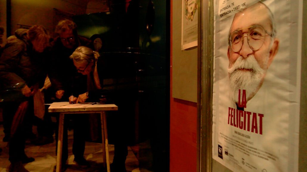 JUDIT PUJOL (La Seu d’Urgell).- La primera edició de Fira&Cinema ha tancat amb l’estrena de la pel·lícula ‘Felicitat’. El film ha estat dirigit pel cineasta d’Estamariu, Joan Gil, amb el formatger, Salvador Maura, com a protagonista. De fet, la història va sorgir per una idea de Maura, que ha esdevingut el desenllaç del guió.