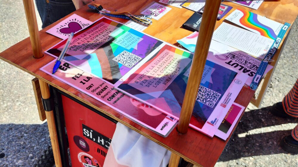 REDACCIÓ. (El pont de Suert).- Divendres passat, a l’espai del Niu Jove a l’Institut del Pont de Suert i al mercat setmanal s’ha pogut veure un carretó mòbil amb material informatiu, marxandatge i dinàmiques entorn de la diversitat afectiva i de gènere. “Tens el plaer de parar-te?” és una iniciativa que té per objectiu informar àmpliament sobre l’existència de la diversitat trencant prejudicis i potenciant el pensament crític. Una trentena de persones hi ha participat en la iniciativa que ja s’ha fet a través del servei SAI LGBTI+, el Servei de Salut de l’Alta Ribagorça i l’Oficina Jove.
