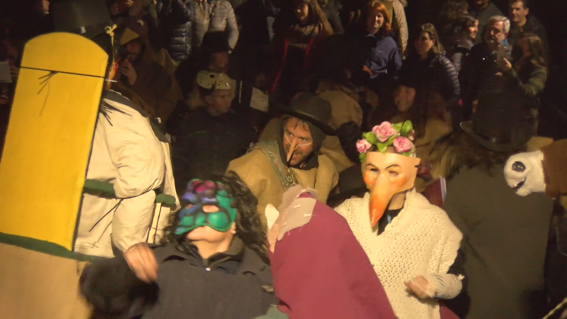Aquest dijous Gras al vespre, ha tingut lloc la cercavila pels carrers del nucli urbà, on els personatges han aprofitat per canviar el nom d’algunes places. Després han pres l’ajuntament i tot seguit han fet el pregó de Carnaval. Tots acompanyats de veïns i veïnes.