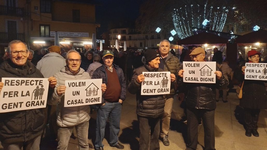 J.F.D.- Desenes de persones van sortir al carrer aquest dijous a la tarda a Puigcerdà per reclamar un nou espai per al casal d’avis que sigui “digne” i exigir “respecte per la gent gran”. Els manifestants van expressar la seva disconformitat amb la situació de manca de local que denuncien que fa tres anys que pateixen i el seu rebuig a la proposta de l’ajuntament d’oferir-los la primera planta del Museu Cerdà. La convocatòria, organitzada per l’Associació Cultural de Nous Ciutadans a la Cerdanya, es va fer a la plaça Santa Maria de la capital cerdana i els manifestants es van dirigir després a la Casa de la Vila.