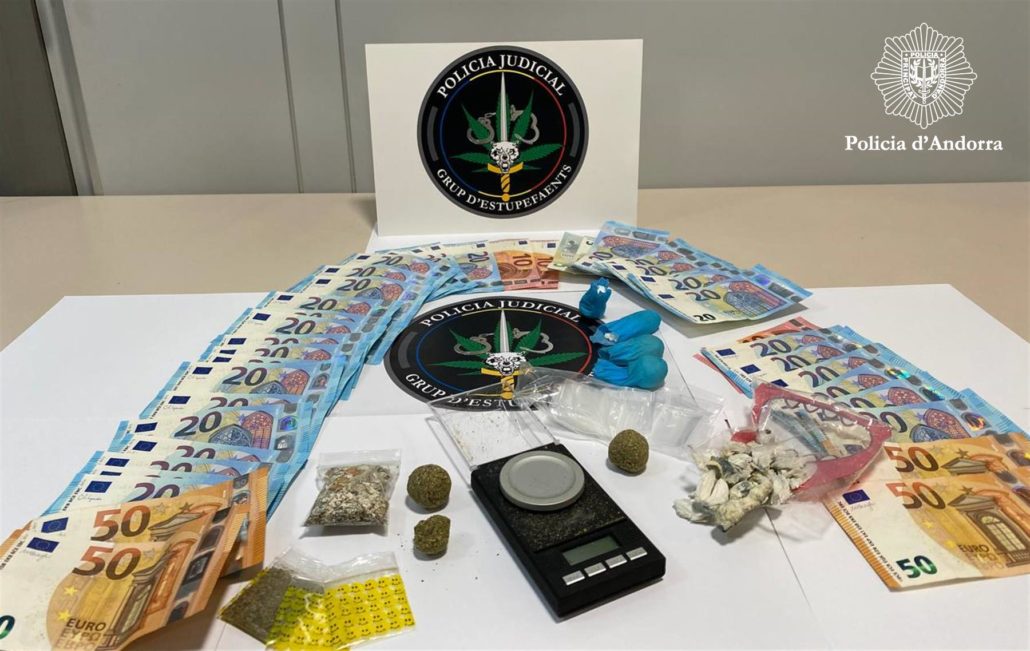 Detenen nou turistes a Andorra amb prop de 30 grams de cocaïna, 13 de marihuana i 8 de bolets