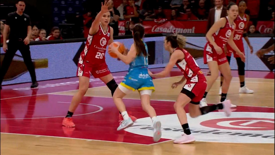 JUDIT PUJOL (Saragossa).- El Cadí la Seu manté la penúltima posició a la Lliga després de la derrota d’aquest diumenge contra el Casademont Saragossa. Amb l’absència d’Anna Palma a la pista, les blanc-i-blaves han encaixat un parcial d’11 a 0 en l’inici de la cita, i a l’anada a vestidors, amb un resultat de 42 a 33, ja s’albirava que s’havien quedat sense opcions per capgirar el marcador.