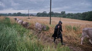 Un pastor, fent la transhumància amb le seves vaques./O.V.