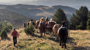 Les imatges de l’exposició són de transhumàncies caminades durant els últims 20 anys, tant d’ovelles com de vaques i d’escamots d’eugues, amb els mascles i els pollins, en diferents punts del Pirineu català, a banda i banda de la frontera administrativa que separa catalans del nord i del sud.