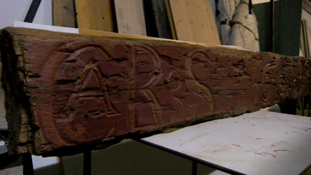 MARTA ARGILÉS MACIÀ (Llívia).-Aquests dies, la conservadora i restauradora de béns culturals, Marta Prunera, ha estat treballant a Llívia en la restauració d’una biga de fusta datada del 1693. L’element, trobat fa uns anys al magatzem municipal, podria haver format part de la balconada d’una antiga casa cerdana.