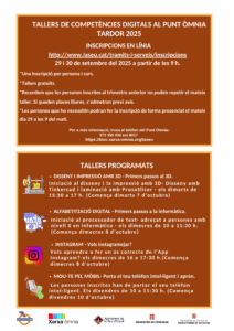 Home»Apunts»El Punt Òmnia de la Seu d’Urgell ofereix 4 tallers de competències digitals aquesta tardor