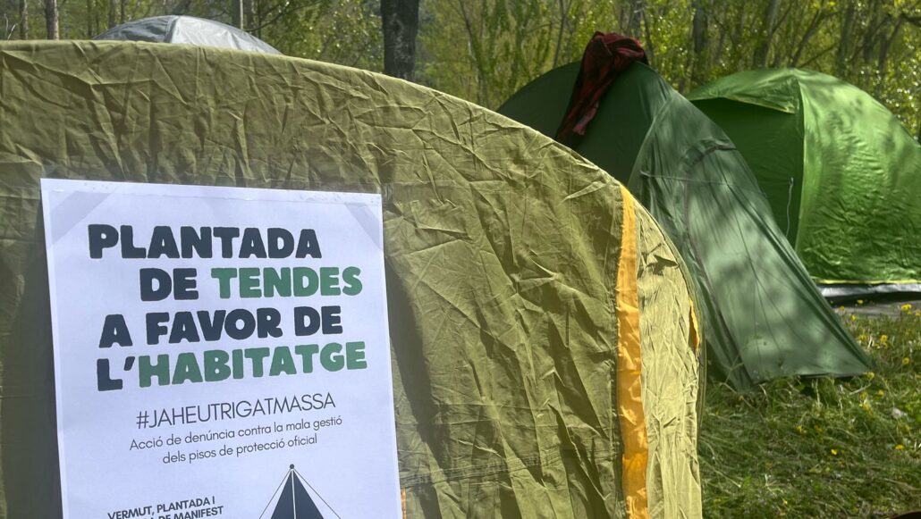 JUDIT PUJOL (La Pobla de Segur).- Una vintena de persones s’han concentrat a la Pobla de Segur, per denunciar la mala gestió dels pisos de protecció oficial. El Sindicat d’Habitatge del Pallars ha organitzat una plantada de tendes per donar visibilitat a la crisi de l’habitatge.