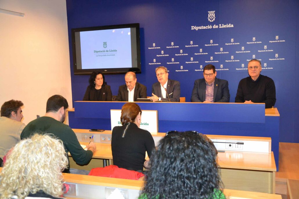 REDACCIÓ.- El president de la Diputació, Joan Talarn, i el vicepresident Juan Antonio Serrano han presentat aquest dijous, a la sala de premsa del Palau provincial, el Manifest en favor d’una regulació efectiva dels Habitatges d’Ús Turístic (HUT), promogut per entitats i ens locals de l’Alt Pirineu i Aran i altres territoris, acompanyats de l’alcalde d’Almacelles i membre d’Ara Pacte Local, Joan Bosch; la secretaria general del sindicat CCOO Terres de Lleida, Cristina Rodríguez; i el secretari general d’UGT Terres de Lleida, José Luis Aguilà.