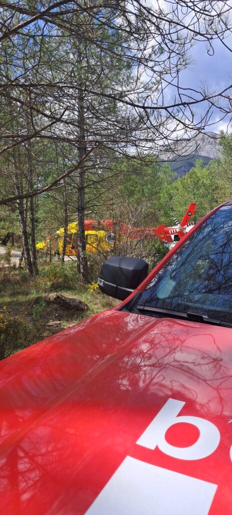 Els serveis d’emergències han rebut l’avís a les 13.15 h i fins al lloc de l’incident s’hi ha desplaçat una dotació terrestre de Bombers i de SEM i, un cop allí, han activat l’helicòpter amb GRAE i SEM.