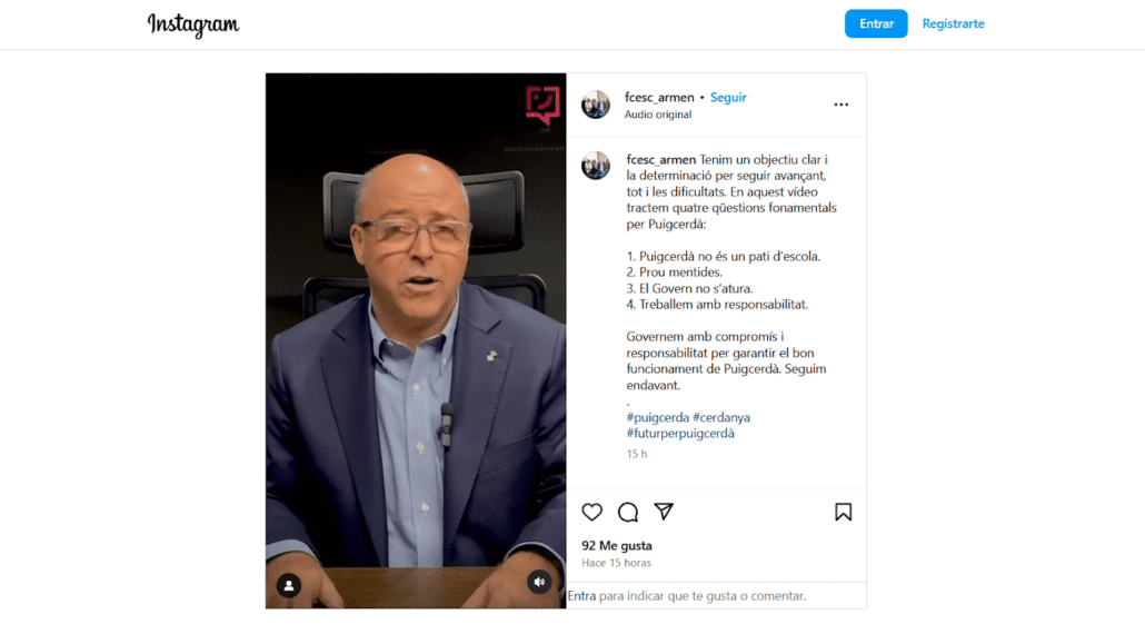 MARIA FORMENTI (Puigcerdà).- Francesc Armengol assegura que està “legitimat per ser el proper alcalde de Puigcerdà” durant els pròxims dos anys de legislatura. En un vídeo difós a les seves xarxes, el primer tinent d’alcalde es defensa de les acusacions que l’han assenyalat, diu, des de la campanya electoral. Unes acusacions que tornen a posar el focus a l’expedient sancionador que l’Ajuntament va posar a la seva empresa familiar les quals, assegura, són “mentides”. A més, ha obert la possibilitat a tothom que ho vulgui a demostrar-ho amb “documents i evidències”.