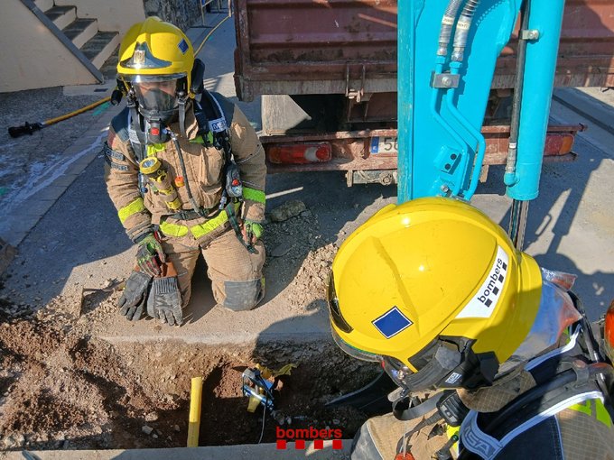 Els Bombers van traslladar dues dotacions terrestres que han pogut obrir el terra de la via i aturar la fuita, un cop localitzada.