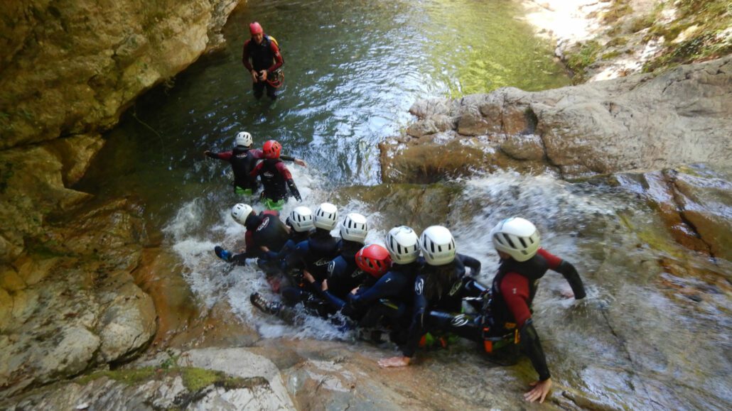 Grup de participants durant el descens d'un barranc./Aj. La Torre de Capdella.