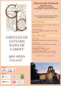 A la tarda, es farà una lectura dels Greuges de Caboet en català antic i en català actual a càrrec de membres de l’Associació d’Amics de la Vall de Caboet, i tot seguit es donarà pas a una taula rodona anomenada ‘Les entitats que salvaguarden els Greuges’, la qual anirà a càrrec de Joan Anton Rabella, cap de l’Oficina d’Onomàstica de l’Institut d’Estudis Catalans i Eugènia Serra, directora de la Biblioteca de Catalunya.