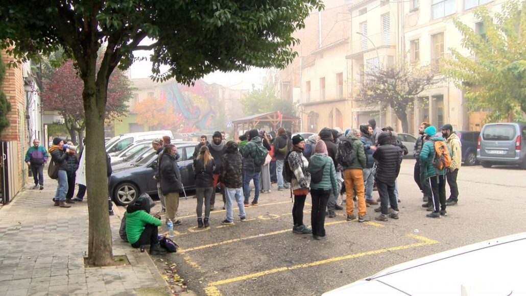 FERRAN BLANCH (Tremp).- A les 9:00 del matí d’aquest dijous, els sis citats a judici pel cas de l’ocupació de l’edifici de Rialp han entrat al Jutjat de Tremp. Durant les aproximadament tres hores de declaracions, al carrer, més d’una seixantena de persones els feien suport amb crits de protesta en contra dels polítics, del Bisbat, del fons voltor i dels propietaris de pisos, exigint solucions.