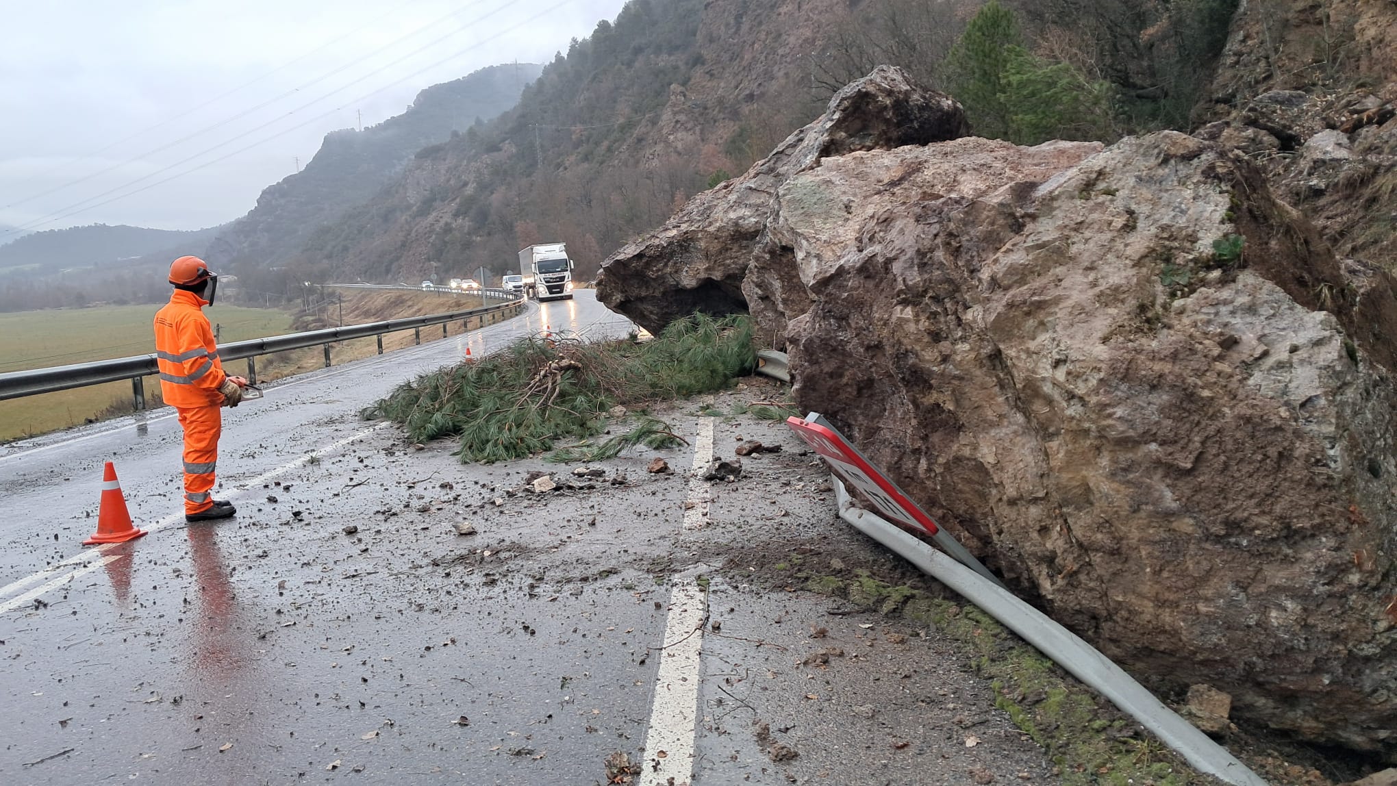 REDACCIÓ (Ribera d’Urgellet).- Una roca de grans dimensions ha caigut aquest dimarts al matí a la carretera C-14, al municipi de Ribera d’Urgellet, i ha tallat gran part de la calçada. El despreniment ha estat a l’altura d’Hostalets de Tost, entre els kilòmetres 171 i 172, i els serveis d’emergències han habilitat pas alternatiu, segons ha informat el Servei Català de Trànsit. De forma que hi ha retencions ara mateix, però no està la carretera totalment tallada.