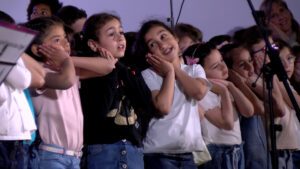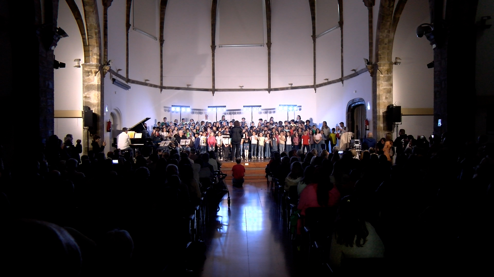 Els infants han estat acompanyats per professorat de l’Escola Municipal de Música i per l’Ivan Caro, com a narrador. La coral, dirigida per Sònia Lanau, ha interpretat la història de Daniel, que busca arribar fins la lluna per a fer-li un petó.