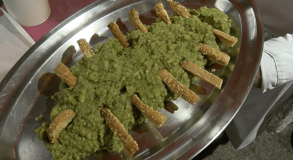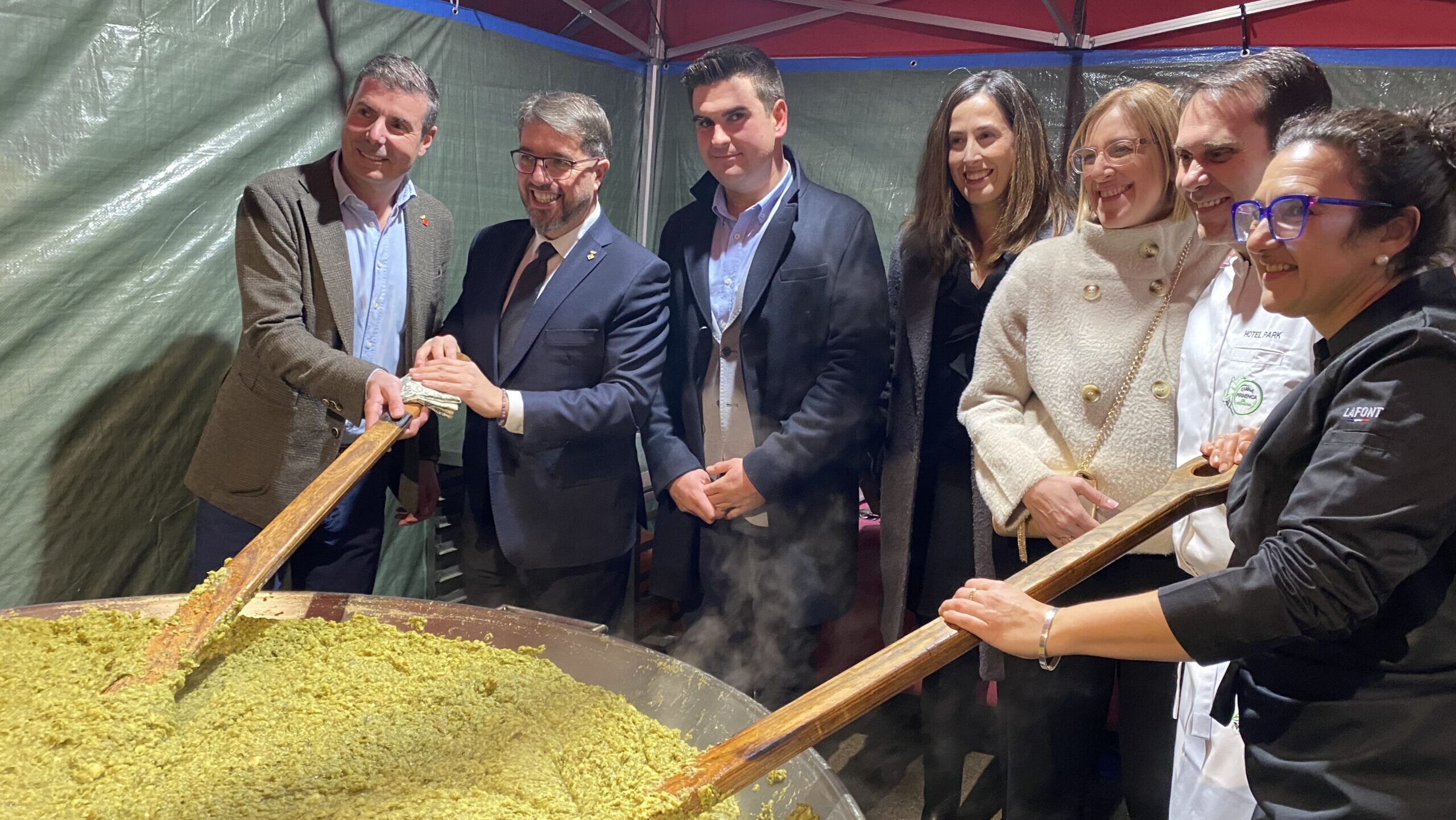 El centre de la festa ha tornat a ser la gastronomia i el seu plat estrella, que s’ha servit amb el seu ja habitual ritual. En la seva elaboració hi han col·laborat establiments de tota la comarca, cadascun aportant-ne una quantitat feta a partir de la mateixa matèria primera. “La base és una col que sigui tocada pel gel, una patata bona d’aquí, fer la rosta i amb el seu suc amanir el trinxat”, ha explicat Esteve Marginet, cap de cuina de l’Alberg La Bruna. El trinxat ha anat precedit d’una taula d’embotits i formatges locals, i seguit d’una cuixa de tiró confitada amb salsa i ceps.