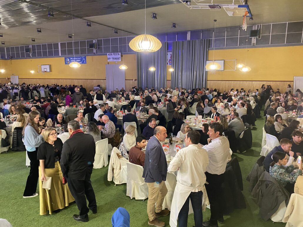 JOFRE FIGUERAS DOY (Puigcerdà).- La Festa del Trinxat de Puigcerdà ha celebrat aquest dissabte al vespre la seva 29a edició amb el tradicional sopar al pavelló del Club Poliesportiu. Tot i la reducció de l’aforament, que s’ha limitat a 600 comensals, un terç menys que l’any anterior, l’esdeveniment ha mantingut el seu caràcter multitudinari i ha tornat a tenir una bona acollida entre els assistents. Els participants, vinguts majoritàriament de Puigcerdà i de la comarca, han omplert la seixantena de taules parades per l’àpat que ha preparat el col·lectiu Cuina Pirinenca de Cerdanya.