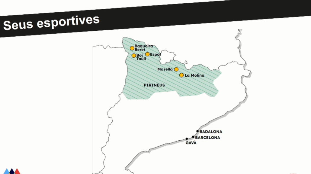 Una de les principals novetats de la candidatura estrictament catalana, és a dir sense l’Aragó, és que Espot, al Pallars Sobirà, passa a ser seu d’algunes proves -amb la candidatura conjunta, el Pallars no n’acollia cap- i que algunes de les proves de gel es farien a Gavà i Badalona, a banda de a Barcelona. La resta de proves al Pirineu es mantindrien a La Molina, Masella, Boí Taüll i Baqueira Beret. La proposta catalana incorpora Andorra com a col·laboradora en l’àmbit de l’allotjament, però no per realitzar-hi cap prova esportiva.