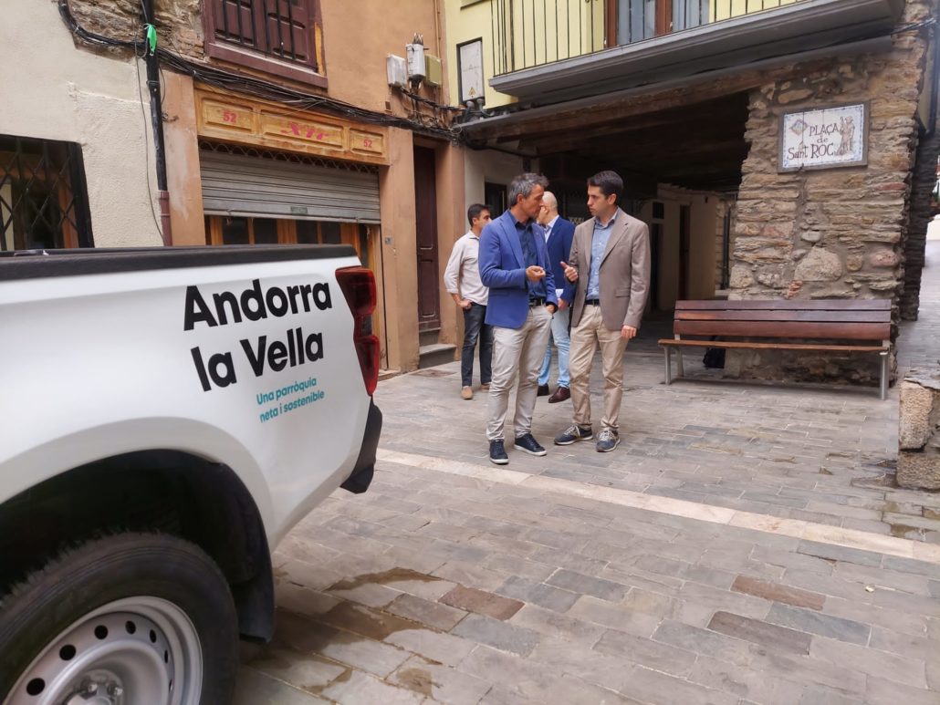 El conseller de Sostenibilitat i Innovació del Comú d’Andorra la Vella, Gerard Estrella, ha detallat que “tenim màquines, com ara un camió cisterna, amb 6.000 litres, i fem la neteja a pressió per a la primera passada, per desincrustar la porqueria més resistent i, després, l’equip d’operaris, amb les seves Karchers personals, acaben de netejar i fer la repassada final”.