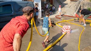 Mentre que els infants, amb hagut de fer punteria amb les mànegues, apagar focs i aprendre a orientar-se amb els ulls tapats, els adults, que han participat per parelles han hagut de tirar bitlles amb mànegues i tallar troncs. Com a novetat d’enguany, també han hagut de jugar a tres en ratlla amb mànegues de 70, d’un pes considerable.
