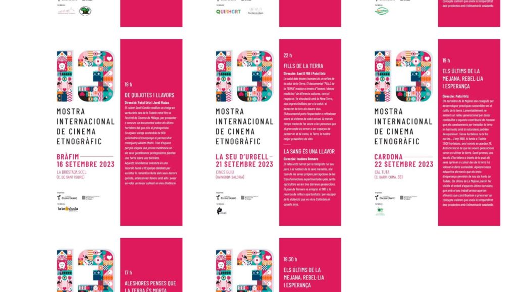 D’altra banda, el dissabte, 23 de setembre l’EcoMuseu de les Valls d’Àneu, a Esterri d’Àneu, acollirà la projecció de la pel·lícula ‘Els últims de La Mejana, rebel·lia i esperança’, de Patxi Uriz. El mateix dia, i en el marc de la Fira Arç, amb el suport de Llavors del Cadi: Associació de varietats locals de Cerdanya, Prullans acollirà la projecció de la pel·lícula ‘Aleshores creus que la terra és cosa morta’, de Florence Lazar (2019).
