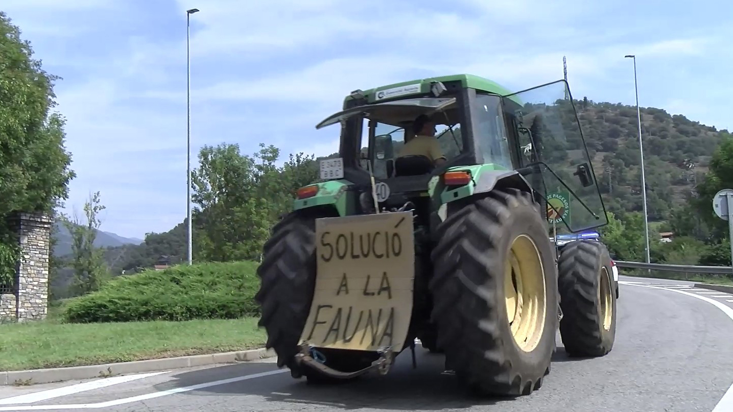 MERITXELL BELLERA (La Seu d’Urgell).- Una marxa lenta de tractors ha recorregut aquest dimecres part de la N-260, entre Montferrer i la Seu d’Urgell, en una convocatòria de protesta d’Unió de Pagesos per exigir mesures concretes que solucionin els danys causats per la fauna salvatge, com ara l’os i el llop, al sector agrícola i ramader.