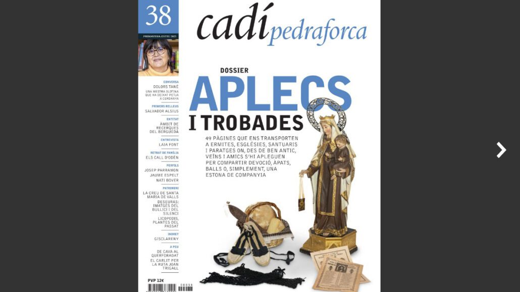 REDACCIÓ (Pirineus).- Els aplecs i les trobades de l’Alt Urgell, el Berguedà, Cerdanya i la Vall de Lord protagonitzen el dossier del número 38 de la revista Cadí-Pedraforca, que edita el Grup Gavarres. La revista cultural es trobarà des d’aquest dijous als punts de venda habituals, amb la novetat que a partir d’aquest número, es podrà adquirir de forma independent, separada de Garona-Nogueres, fet que ha permès incrementar notablement el contingut i créixer fins a les 116 pàgines.