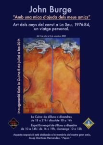REDACCIÓ (La Seu d’Urgell).- Aquest dissabte, 5 de juliol, tindrà lloc a la Seu d’Urgell la inauguració de l’exposició ‘Amb una mica d’ajuda dels meus amics’, John Burge, artista australià arrelat a l’Alt Urgell, que la dedica a la memòria de Josep Martínez Hernández, ‘Pepon’.