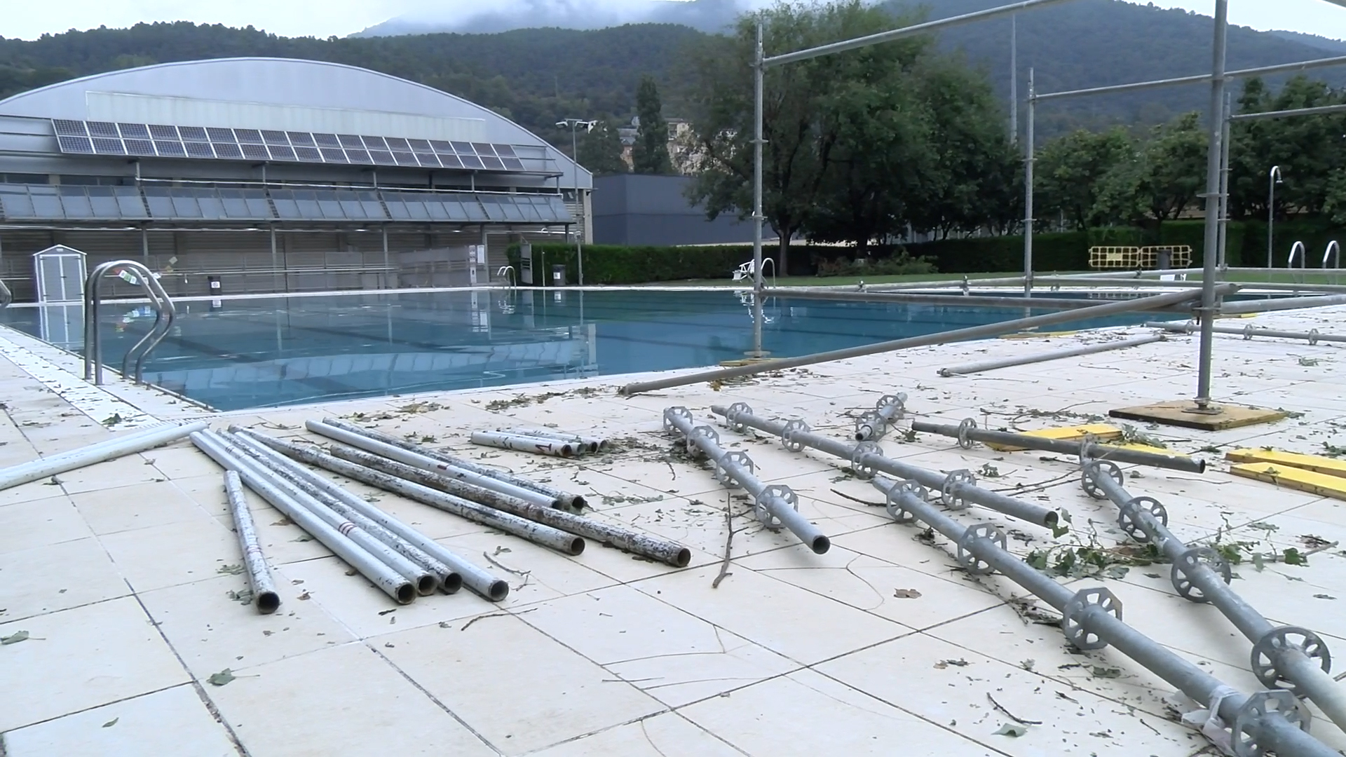 La tercera tinent d’alcaldia, Christina Moreno, ha explicat que “la piscina municipal és una de les zones que ha rebut el major impacte i actualment no està a disposició. S’està treballant des de primer moment per revertir aquesta situació, però si que és veritat que tan la instal·lació de la piscina municipal com la pròpia piscina estan en unes condicions en les quals encara s’hi ha de treballar. El mur del Pau Claris i un mur que tenim a la zona esportiva han cedit per la pressió de l’aigua, s’hi està treballant i el més aviat possible es farà el que convingui”.