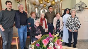 JUDIT PUJOL (La Seu d’Urgell).- Nativitat Rugall Tartera ha complert 101 anys aquest dimecres, 14 de maig. L’alcalde de la Seu d’Urgell, Joan Barrera, s’ha desplaçat a la Llar de Sant Josep per felicitar-la personalment i entregar-li un ram de flors i un pastís. La felicitació també ha servit per compartir una conversa amb la centenària i els seus familiars.