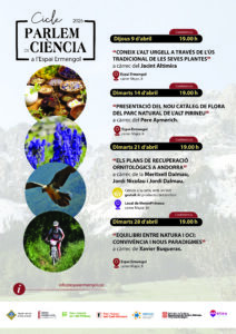D’altra banda, des de l’Àrea de Medi Ambient de l’Ajuntament de la Seu d’Urgell, l’Espai Ermengol-Museu de la Ciutat i MeteoPirineus, la setmana que ve es dona el tret de sortida a la 5a edició del cicle «Parlem de Ciència», amb un programa que posa el focus en la fauna, la flora i els reptes de sostenibilitat del territori pirinenc.