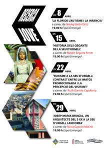 Aquest cicle és una plataforma fonamental per conèixer projectes de gran qualitat que ofereixen una mirada crítica i innovadora sobre àmbits tan diversos com la història, la societat, el turisme o l’arquitectura. Les sessions tindran lloc tots els dimecres del pròxim mes d’abril a les 19.00 hores a l’Espai Ermengol i són obertes a tota la ciutadania.
