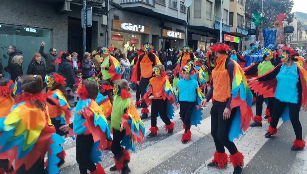 Sota el lema ‘Rebobinem’ per combinar música de totes les èpoques i la festivitat de Carnaval, la rua del Carnaval de la Seu d’Urgell ha desfilat pels carrers.