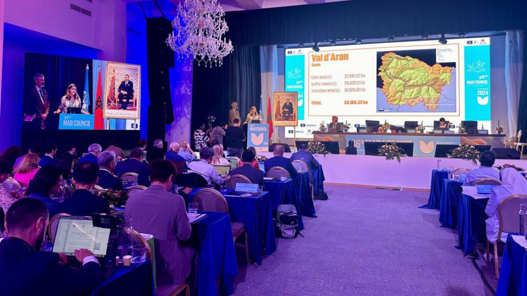 REDACCIÓ. (Vielha).- Aquest divendres ha tingut lloc a Agadir (Marroc) la cerimònia de reconeixement com a Reserva de la Biosfera de la Unesco amb un total 11 regions de tot el món, entre elles la Val d’Aran que, juntament amb la regió d’Irati (Navarra), han estat els dos únics territoris de l’Estat espanyol reconeguts amb aquesta distinció.