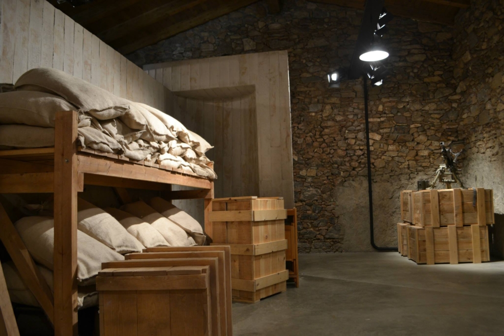 Sí, el centre d’interpretació és on comença la visita, amb tres audiovisuals curts, de cinc minuts, per tenir una idea de què és això. També hi ha diverses fotografies i documents de l’època per anar tenint una mica d’informació. Al mateix centre també hi ha alguns mapes de totes les instal·lacions del Pirineu, alguns elements de decoració com poden ser màusers i cascs i una mica de bibliografia, tot i que no hi ha gran cosa. Allà es fan les visites habituals, cada cap de setmana, fora de quan està gelat. Quan es pot visitar, s’obre cada cap de setmana i, després, pels ponts, Setmana Santa i tot l’estiu. Es fan les visites a aquest conjunt de nou búnquers sota terra, però especialment a l’estiu, per Setmana Santa o pels ponts també fem visites per conèixer aquests fins a 80 búnquers que tenim a la zona de Martinet. Així, a part de la visita habitual, des del centre s’organitzen sortides per anar a veure les bateries antiaèries, el Roc de la mel, uns búnquers amb trinxeres que hi ha a la zona de l’estret i així, de mica en mica, anem coneixent tota la instal·lació, tot el concepte defensiu de la zona. Obrim fins al pont del desembre, que si neva ja és complicat fer-hi visites, i tornem a començar per Setmana Santa.