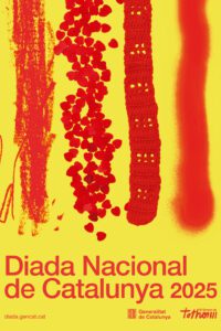 El cartell de la Diada de Catalunya d’enguany és obra de la cooperativa Partee, formada pels dissenyadors Ignasi Roviró, Roger Orriols i Jordi Farrés que han reinterpretat la senyera amb tècniques i materials diversos, com ara ganxet, retalls de cors, esprais i pintura per transmetre diversitat i pertinença.