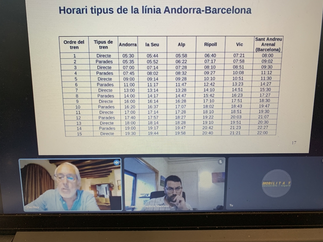 La ponència s’ha pogut seguir pel canal de Youtube de la Fundació Mobilitat Sostenible i Segura i ha comptat amb la presentació i moderació de l’alcalde de la Seu d’Urgell, Francesc Viaplana. L’alcalde ha assenyalat la importància de parlar de l’arribada del tren a aquesta banda del Pirineu i de connectar la serralada també transversalment. També ha celebrat el seguiment que ha tingut la presentació, que ha comptat amb mig centenar d’assistents.