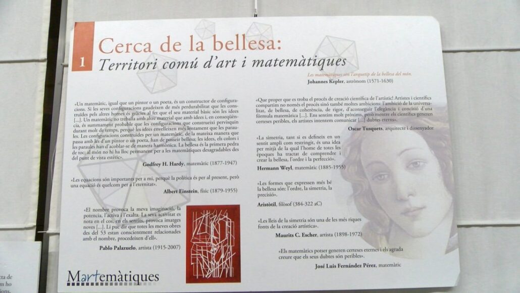 En aparença, art i matemàtiques són dos disciplines que es troben molt allunyades però a través de l’obra arquitectònica la relació és immediata. Un fet que la mateixa exposició deixa clar, com comenta Victòria Xifré, directora del Centre de Recursos del Pallars Jussà: “En les escultures podem trobar matemàtiques, però no nomé. També hi ha química en l’art, per crear textures o pigments”.