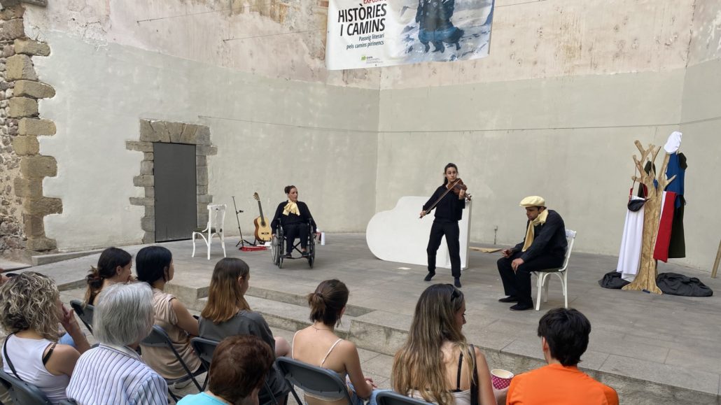 J.F.D. (La Seu d’Urgell).- L’obra de teatre ‘Camins que parlen’ s’ha representat per primera vegada a la Seu d’Urgell aquest diumenge a la tarda amb la Biblioteca de Sant Agustí com a escenari. Es tracta d’una proposta de la companyia La Fanga Escènica que forma part del projecte ‘Històries i camins’, promogut per l’Institut per al Desenvolupament i la Promoció de l’Alt Pirineu i Aran (IDAPA). La creació acompanya i s’inspira en l’exposició itinerant que ara es troba a la mateixa biblioteca i que vincula sis camins de les comarques pirinenques amb sis textos literaris.