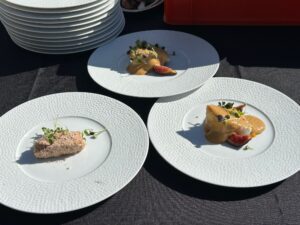 Per la seva banda, Helena Costa i Jordi Palou, del recent estrenat restaurant Taraó, de la Seu d’Urgell, participen per primera vegada a la mostra i creuen que és una oportunitat per donar-se a conèixer a altres bandes del Pirineu. En el seu cas, seguint la línia del seu establiment, fusió de cuina catalana i japonesa, ja que consideren que tenen molts elements en comú, han presentat un dels plats que portaran a la mostra: “una careta de porc, un mar i muntanya molt reivindicatiu de la cuina catalana on barregem porc i sardina amb dues tècniques. Una molt tradicional japonesa i una molt tradicional catalana”.