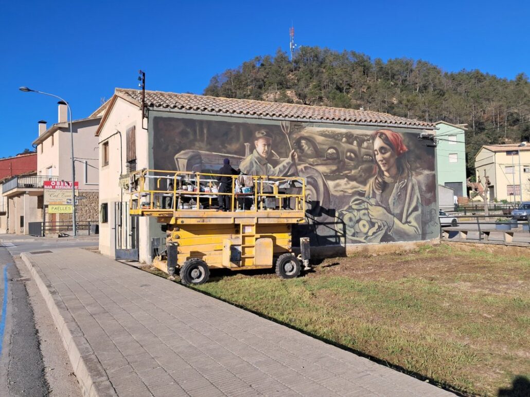 El mural s’ubica a l’edifici de l’antiga botiga, al costat de la carretera, perquè sigui visible per a tothom. La creació forma part d’un projecte que ha implicat infants i joves del municipi, tal com explica Garreta: “La primera idea era fer un mural conjunt i vam fer un taller perquè el jovent del poble pogués familiaritzar-se amb els esprais”.