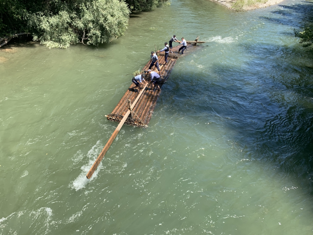 À.F.- Sí, la qüestió és que la cosa engresqui als petits. Jo crec que és una cosa que no es fa cada dia, no es baixa cada dia, no es fa una embarcació amb bigues com es feia abans, utilitzant els mètodes d’abans, i això, en aquesta època tan tecnològica, amb tantes pantalles, trenca moltíssim amb allò al que estem acostumats. Penso que és atractiu dir-li als petits i joves “aquí no hi ha cap pantalla, ara treballaràs la fusta amb les teves mans i després veuràs que això té un resultat, que és baixar pel riu com ho feien antigament”. Tot plegat fa que hi hagi molta demanda per baixar i que sempre hi hagi unes quantes empentes, perquè com a màxim poden baixar cinc o sis persones en un rai, però ja està bé que hi hagi demanda.