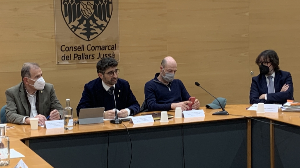 El vicepresident del Govern i conseller de Polítiques Digitals i Territori, Jordi Puigneró, ha assistit aquest dimecres al ple del Consell d’Alcaldes del Pallars Jussà. Un dels temes que s’ha tractat ha estat el projecte dels Jocs Olímpics d’Hivern i ha comptat amb la participació de la secretària general de l’Esport, Anna Caula i del secretari general de la Vicepresidència, Ricard Font, que han exposat als alcaldes els arguments que van anunciar fa uns dies en roda de premsa.