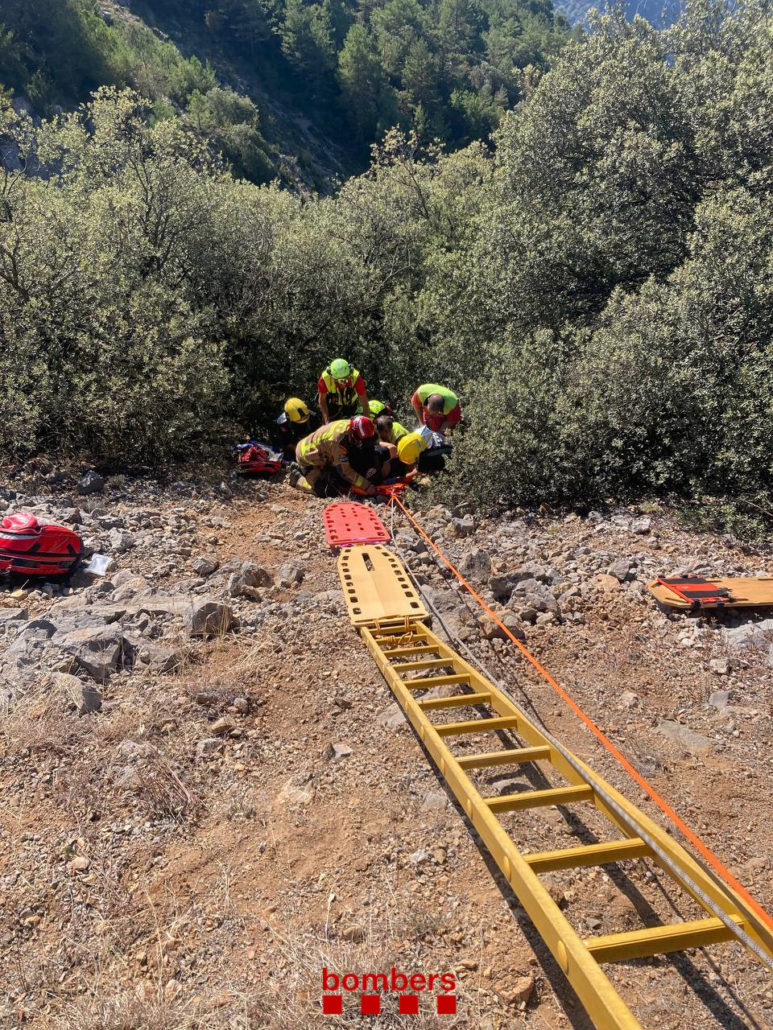 Els Bombers han rebut l’avís a les 12:10 del migdia i s’hi han desplaçat amb tres dotacions i la unitat de rescat del GRAE. Un cop allà, han fet una primera atenció del ferit i l’han immobilitzat amb una llitera, per després muntar una instal·lació i poder pujar-lo pel terraplè fins a peu de carretera.